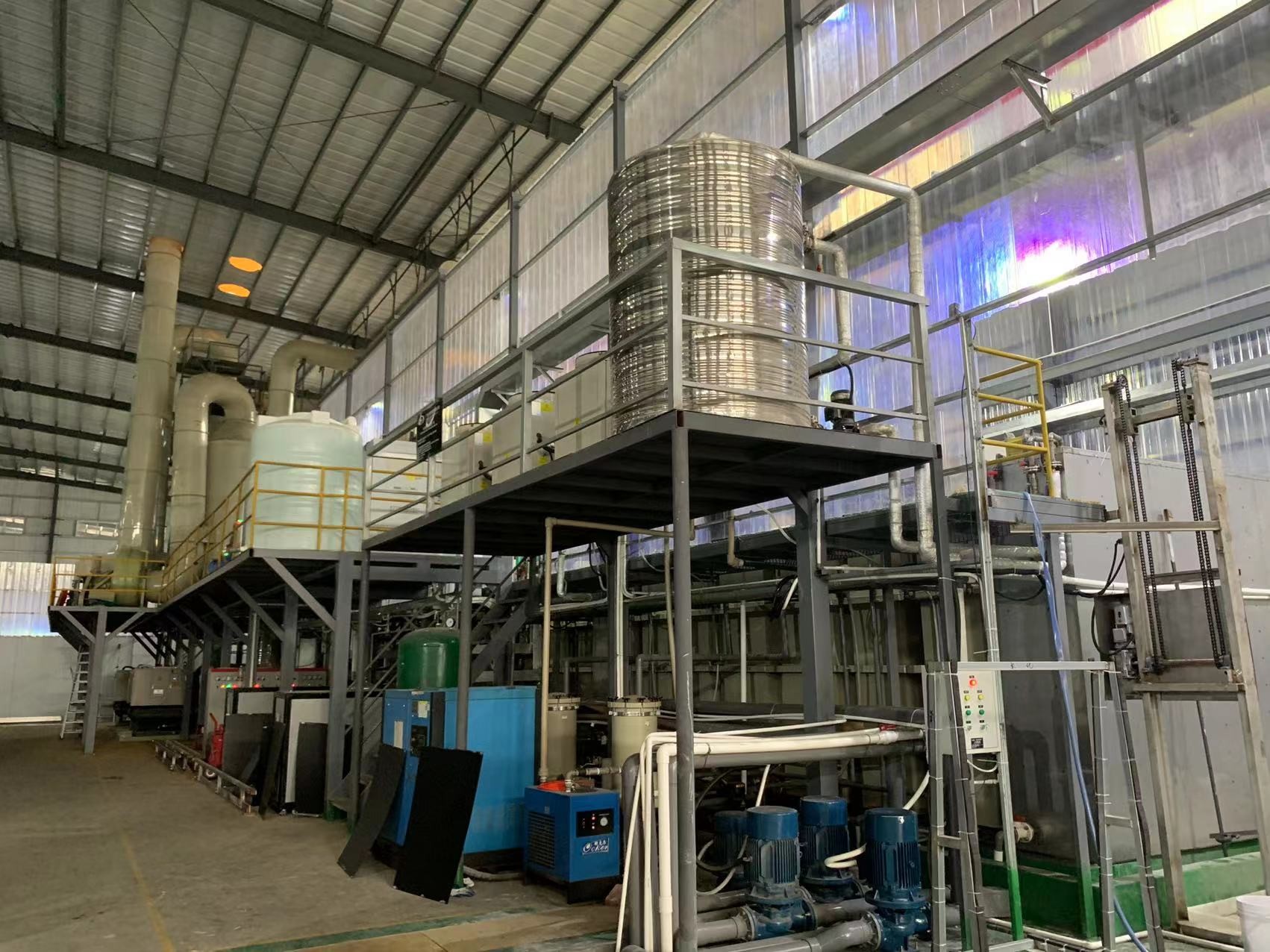 - रंग [स्टैनस सल्फेट 3-8 ग्राम/ली,मुक्त सल्फ्यूरिक एसिड15-25 ग्राम/ली,पीएच 0.8-1.2]2 टैंक